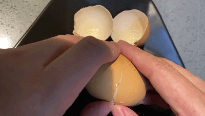 未钻孔的鸡蛋基本已经被热水煮熟了,鸡蛋我没浪费,直接吃了,口感Q弹,味道真的不错。