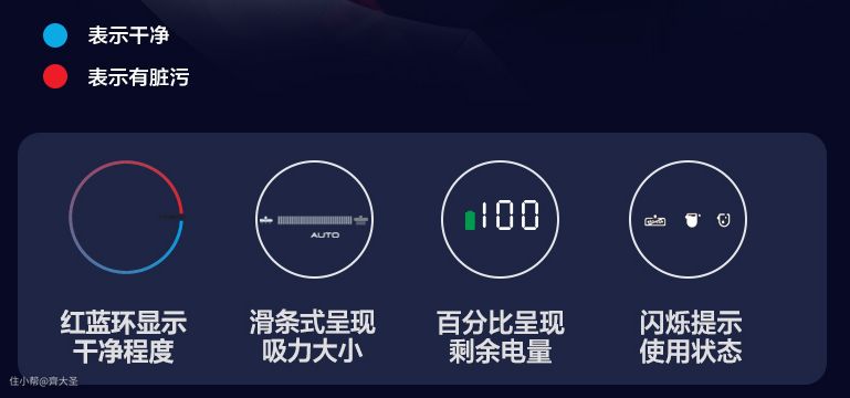 机身自带LED彩色高清显示屏,可以实时显示工作状态、剩余电量等信息,机器状态尽收眼底。
