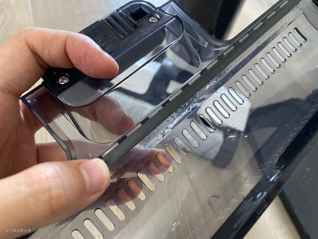 污水桶前部有一块可拆卸过滤板。目的就是为了防止大颗粒物被倒入下水道造成堵塞,也为了方便清洗污水桶。可以说实现了垃圾的固液分离,清理更简单