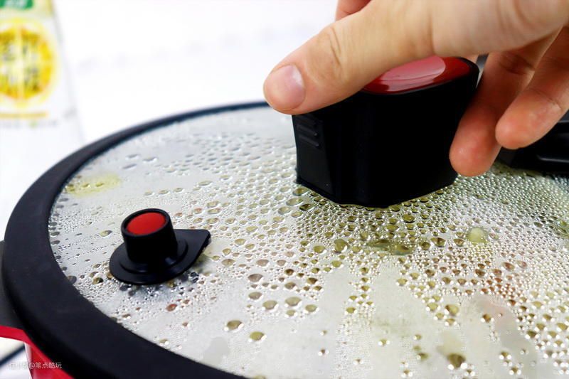 与高压锅的泄压阀原理类似,当锅内气压力超限,锅盖边缘的自动泄压阀将会被蒸汽顶起;而压力不大的时候,打开锅盖前顺势按动把手一侧的按钮,即可手动排气,锅盖也轻松打开。