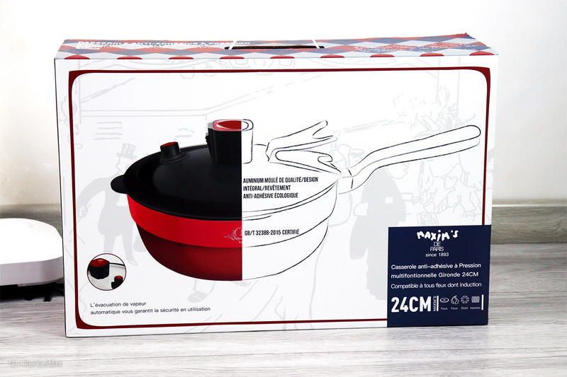 下面从开箱说起,这只微压不粘锅全名为马克西姆·吉伦特微压全能不粘锅,有红、蓝、灰三种颜色可选,我选了红色,生活本该红红火火。