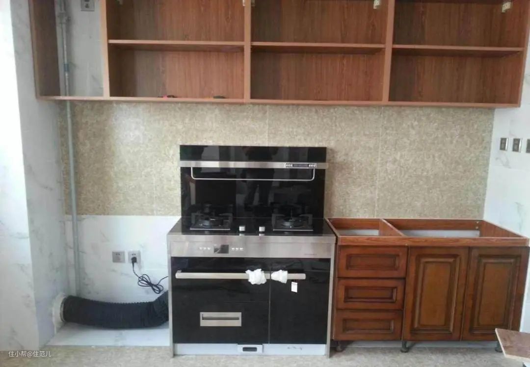 要注意它是下排烟,烟管整个占用地柜的一大片。