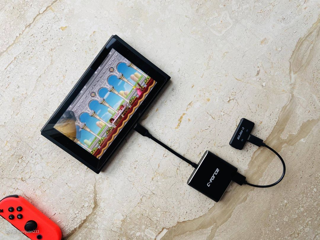 TV模式下,其实和前面便携屏的套路是类似的,不在需要蓝颜适配器,只要换一根标准HDMI线就好了,Switch买的时候会送的。