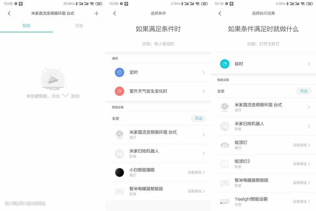 ▲米家的设备支持的智能联动一直是一个不错的功能,可以通过室内的温湿度联动开启风扇,也可以提供门感应器检测人入户之后,更多的玩法就靠你们自己去发掘了。