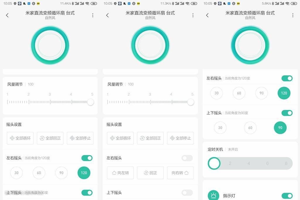 ▲APP内可以设置自然风,直吹风,儿童锁,同时风力在APP端支持100级调节,你可以在噪音和风力之间做一个平衡。