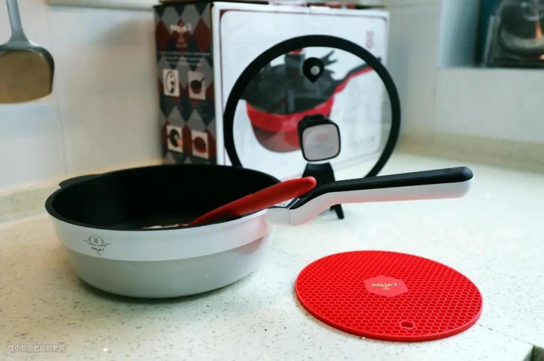 算了还是买一口不粘锅好了,在朋友的推荐下入手了马克西姆微压不粘锅。关于这口不粘锅,主要有两个特点:一是不粘,不粘锅当然不粘了;二是微压,这点老房倒是头一次听说有这种厨具,也蛮好奇的。