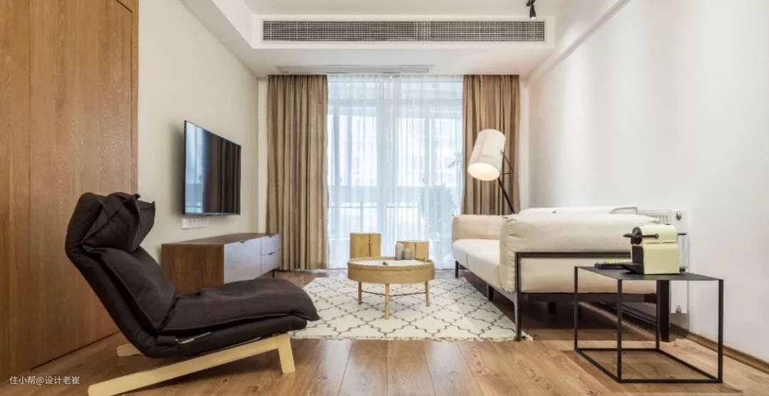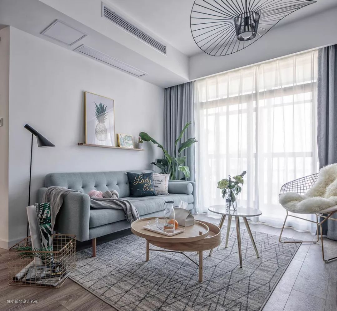 沙发原本就是一个比较宽大的家具,在沙发上方做个宽大的吊顶对空间视觉不会有太大的影响;另外,中央空调一般是下回风的,所以不用担心把空调装在沙发上方会对着坐在下边的人吹。