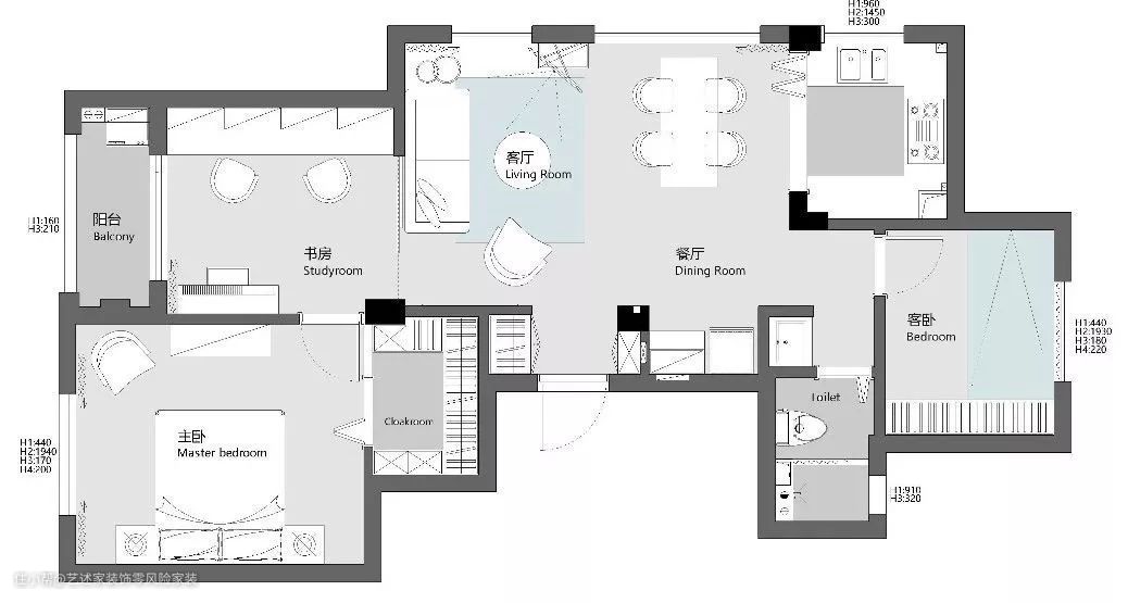 这样看就明白整个空间的布局了,书房就在卧室的旁边,紧挨着的。