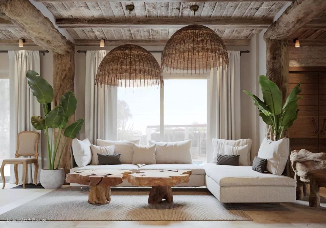 横梁如果改成门,会占用一定的空间高度。所以这种设计,最适合的就是田园风格的设计。