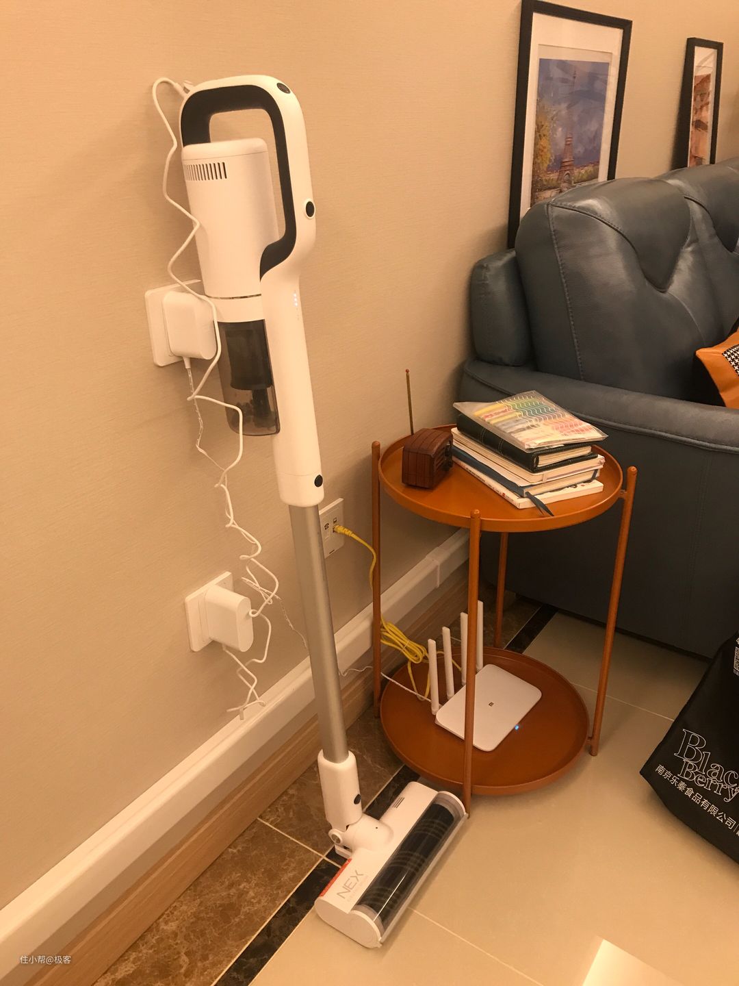昨晚家务清洁之后,可以所以将这款睿米NEX放置在一个角落里,它站的空间非常小。这款NEX吸尘器还提供了2种充电方式,一种是使用电源线直插吸尘器主体上的电源口,另一种是使用座充,可满足不同用户的需求。
