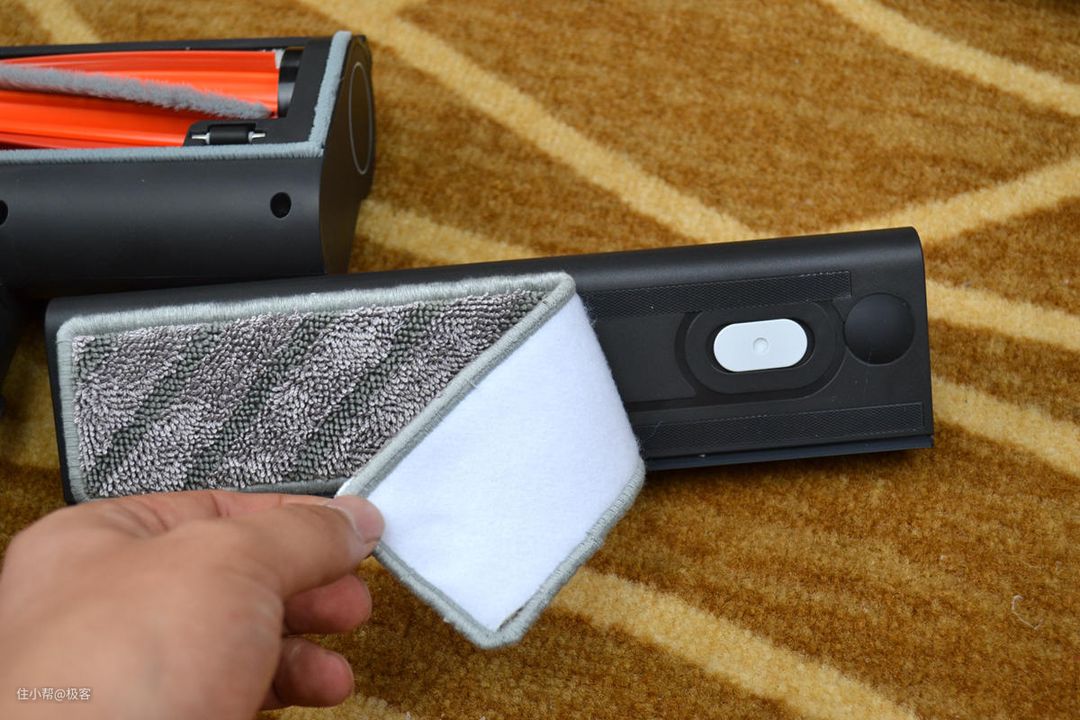 睿米NEX的的水箱能容纳160ml的水量,水箱采用仿生智能缓滴技术,配合超细纤维拖布可以做到保持拖布湿润而水分不会溢出。而拖布与水箱采用魔术贴粘连,用后清洁以及更换都非常的方便。