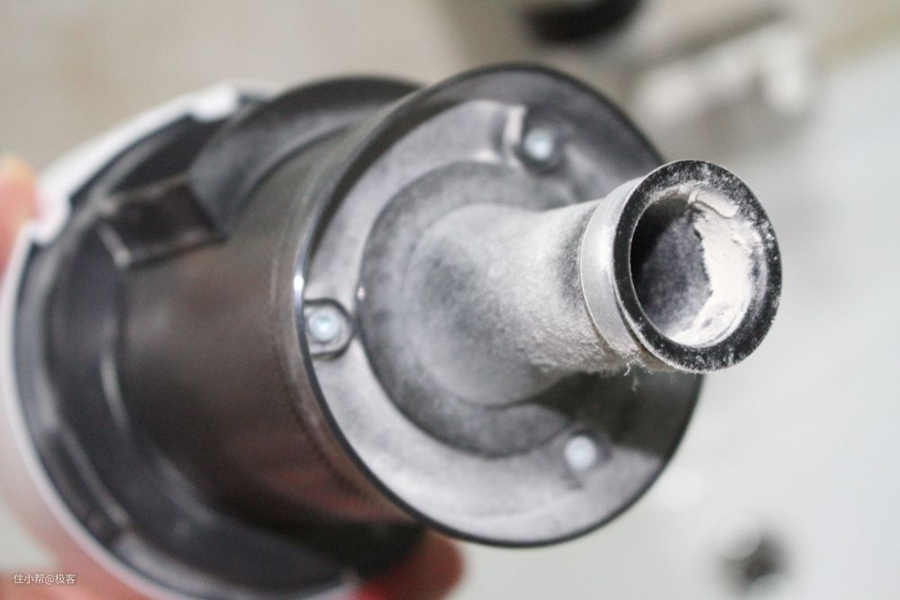 刚用几秒钟,便可以看到储尘杯里面已经布满灰尘以及细小的颗粒,等清洁完床单后,打开储尘杯后,可以看到里面有个毛茸茸的纤维球状物,颜色灰黑,再就是杯壁上面布满灰尘,这得有多脏吧。