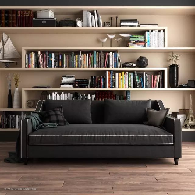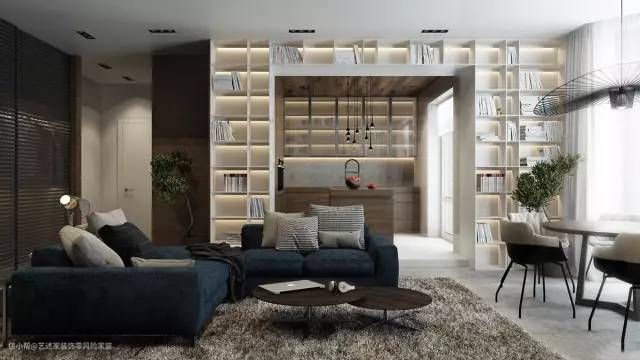1.书柜沙发背景墙要做到顶。半高或者是顶部留出空间的设计会容易留灰,而且会把楼高分隔,让小户型客厅视觉上变的低矮。