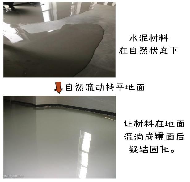 除了墙面外,再给大家介绍一种水泥地面的打造方法——自流平。水泥自流通过让水泥材料在液体状态下,在地面上自动流淌找平地面;