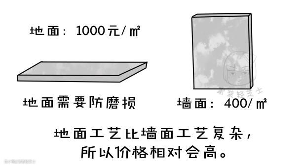 - 微水泥地面价格会比墙面高,地面约为1000元/㎡墙面为400/㎡。因为地面需要防磨损,工艺会比墙面施工复杂,所以价格会偏贵。