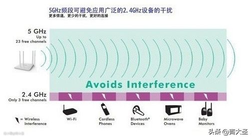 不过,2.4G WIFI在中国只有13个信道可用,而我们大多数用户所使用的无线网络,都运行在2.4GHz 频段。同时,2.4GHz 频段中还运行着无线键鼠、无线耳机、蓝牙设备等 ,也使这一频段非常拥挤。在城市区域,2.4G WIFI的干扰是无法规避的。这时我们就会发现时常有无线信号不佳、网络卡顿、频繁掉线等问题出现。
