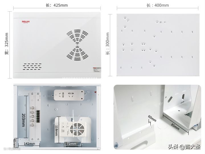对于大户型来说,由于使用设备较多,交房自带的弱电箱一般尺寸很小,且材质为金属,关闭后会屏蔽路由器无线信号。因此建议在装修时,对弱电箱进行改造,使用标准弱电箱,尺寸在400*300*120mm以上。