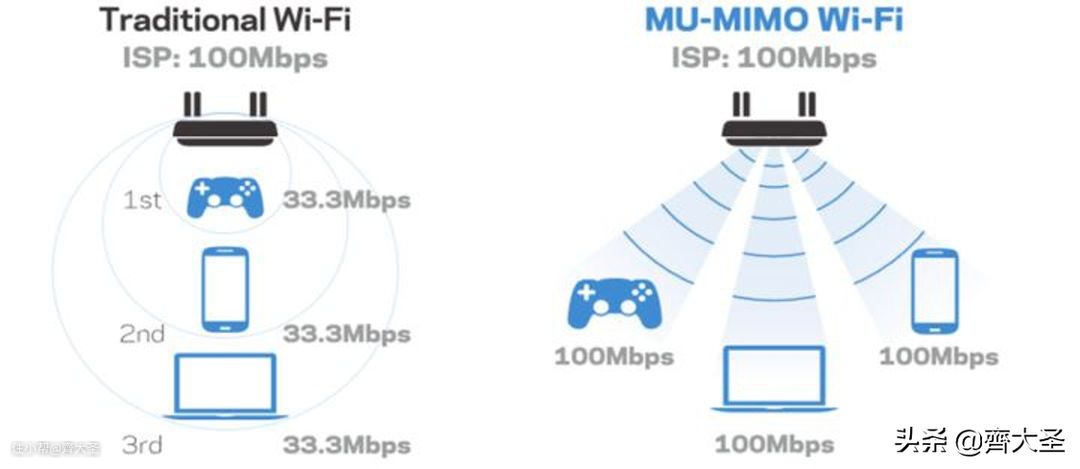 SU-MIMO路由器信号一般是一个圆环,一般是以你的路由器为圆心,向外发射信号,根据远近等关系(不是绝对意义上的远近,更多的是信号质量等方面),依次单独与上网设备进行通讯。 这时当接入的设备过多时,就会出现设备等待通讯的情况,网络卡顿的情况就由此产生。