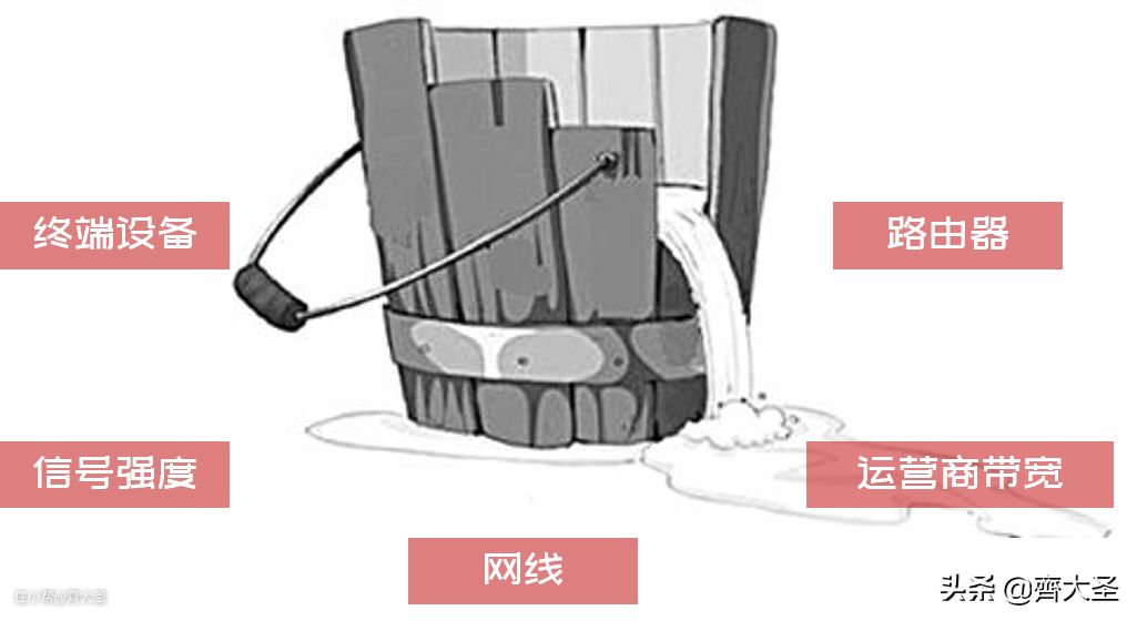 家庭网络表现也符合水桶理论,由运营商带宽、网线规格、路由器性能、信号强度、终端设备数量共同决定。