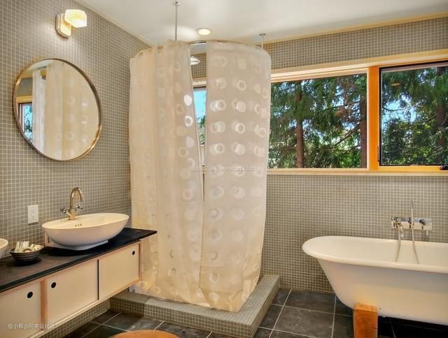 浴帘的宽度要比浴室要宽,也就说在购买时得把它买的大一些,这才会让它多出一些余地,让它能更有更大的实用性。让浴帘可以有些比较富裕的地方,也不用担心在用时会让它有拉不严实的问题。