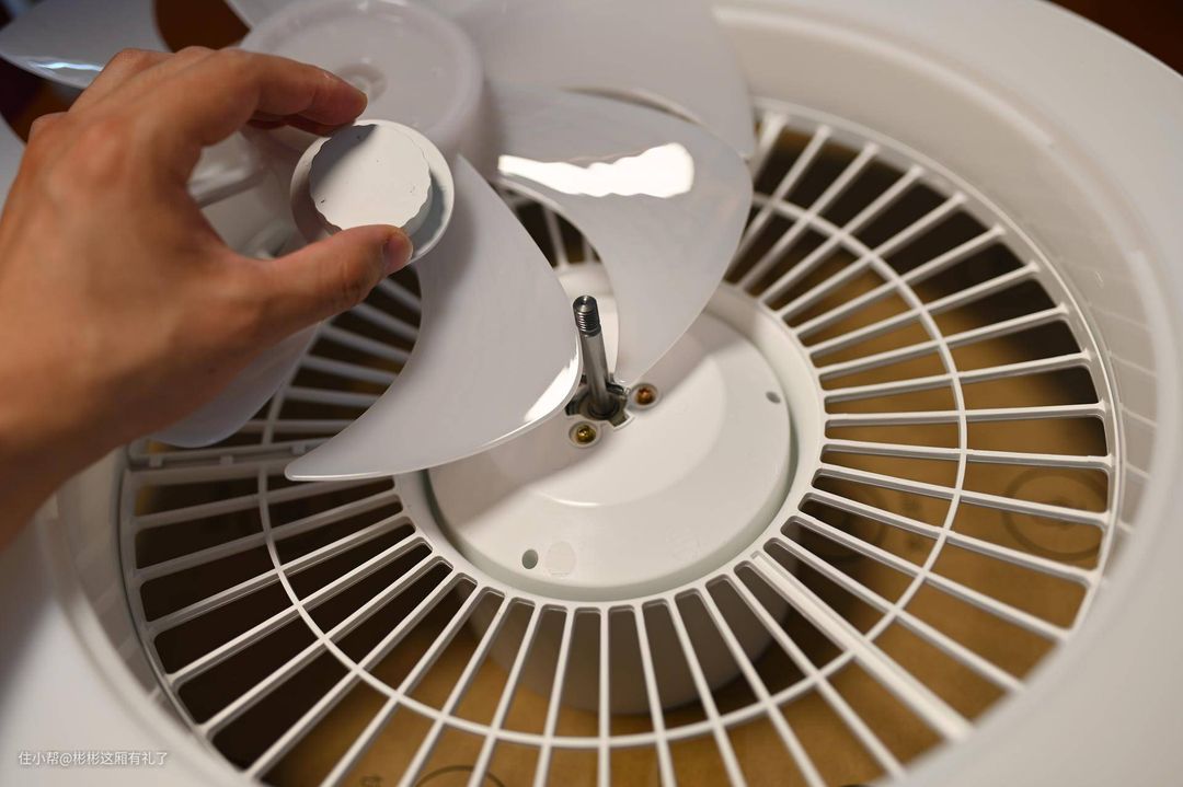 ▲开箱的时候,熊孩子也跟着玩起来,用手拨动扇叶,转得飞快。好在扇叶是PC材质,也不担心会割到孩子的手。扇叶的拆卸也很方便,拧开盖子就可以取下来。这里发生了一个插曲,在师傅安装好之后,风扇转速很慢,没有风出来,当时一度以为是电机坏了。后来才发现,就是在开箱这一刻,没有将扇叶拧紧,才导致了后面的乌龙。