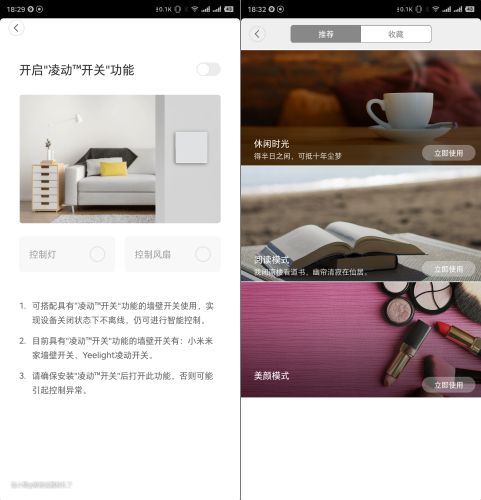 ▲既然是智能风扇,那可玩性还是很高的,比如说还有休闲时光、阅读模式、美颜模式等等预设好的灯光模式,适应家人不同的需求。至于新发现的一个凌动开关,就需要有凌动开关功能的墙壁开关来配合了,家里暂时还没有,等以后可以升级一下。