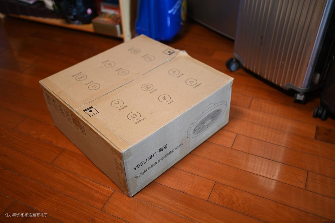 ▲Yeelight这款新款风扇灯造型很简约,和一般灯在内、风扇在外的设计不同,Yeelight这款风扇灯是外围的一圈,而风扇在内圆。我想这样的设计有它的优缺点,优点就是灯罩的面积更大,照明效果更好,但缺点就是扇叶的尺寸稍小,看了一下产品说明,直径12寸,一共8叶,并不算是大风扇。在扇叶面罩边上,可以看到开关锁的标志,趁安装师傅没上门前,自己打开看了一下,日常清洗应该蛮方便的,不用担心积灰。