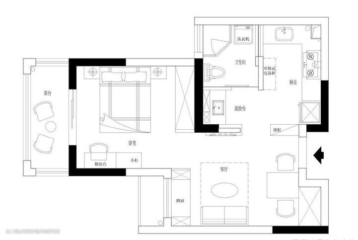 50㎡凸字型公寓,打破常规设计,进门就是厅,让人耳目一新