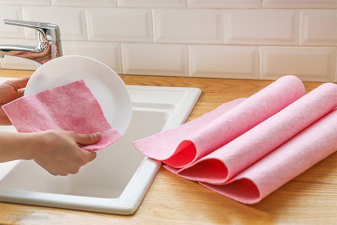 首推木浆棉抹布,它比普通的懒人抹布更环保,比一次性的厨房湿巾更耐用。断点式一撕即开,最大优点是亲水不亲油,特别适合清洗那些沾满油渍、酱料的餐具。油污被木浆棉抹布擦拭后,只是吸附在它的表面,用清水冲下就能去个七七八八,如果再用清洁剂搓搓,就跟新的一样,一张用上三四天不成问题。