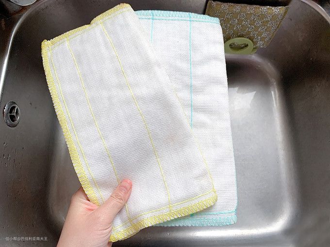竹纤维万用布也好用,天然植物纤维制作,纹理清晰,坚固耐用。它的吸收性和透气性都很好,还不易发臭,每片可以用好几天。楼主一般用它擦厨房台面,白白的,颜色发黄就换,很方便。
