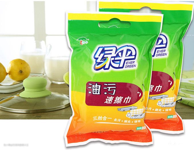 绿伞油污速擦巾含有柠檬清新因子和高效活性剂,适合擦厨房台面、抽油烟机、锅具、水槽等物体。三效合一,擦拭、抛光、去污一次完成,随用随扔,避免二次污染。
