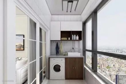 在阳台上安装一个阳台柜,既可以用作收纳又不失美观。常见的阳台柜的设计类型多半是洗衣机柜+水槽+吊柜,洗衣晾衣一步到位,省时又省空间;明净的阳台空间,也可以定制出你的私人休闲区,沐浴阳光,阅读品茗,偶尔也能享受慢节奏的生活。