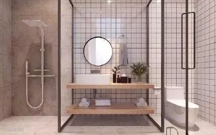 卫生间里面有摆设浴室柜、洗手盆,当然在浴室柜下面也可以做柜子,这样的话可以节省很多的空间摆放物品。要做一个干湿分离的效果,让卫生间看起来整洁又美观。