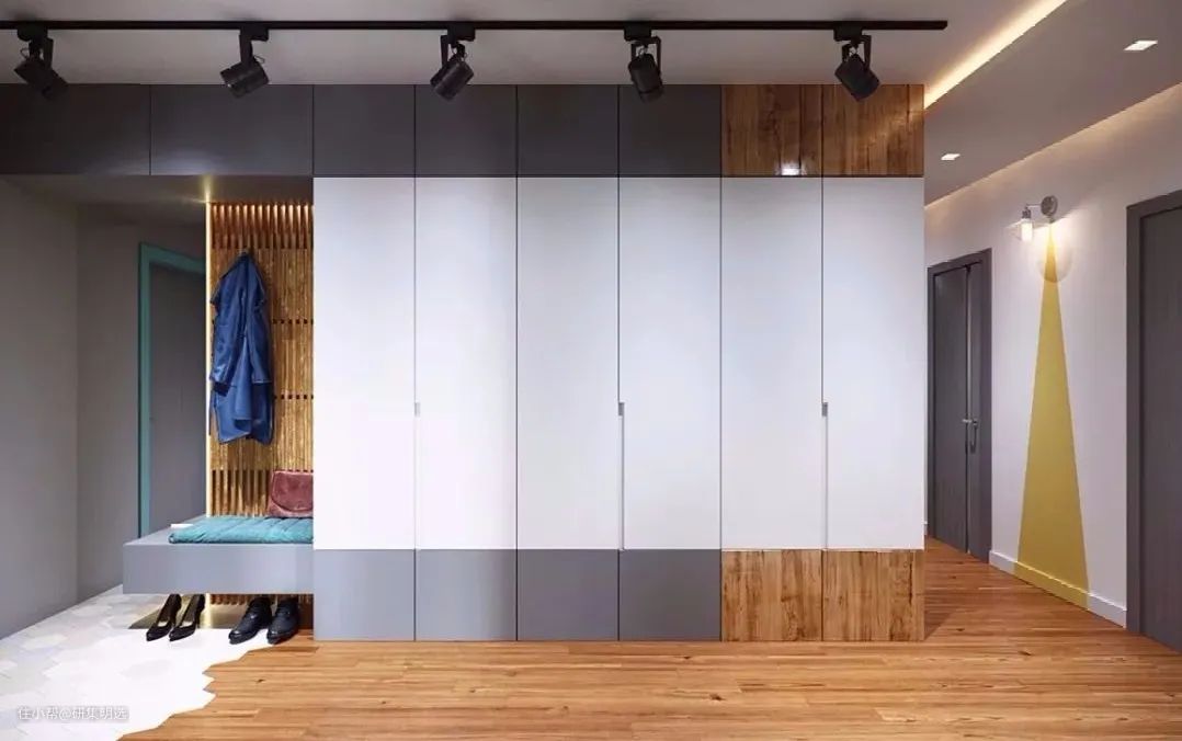 入户玄关的设计起到缓冲和遮挡作用,另外应该有足够的储藏功能,鞋柜储藏鞋,随手挂衣,穿鞋凳等满足进门和出门的方便,整体格局简单大方。