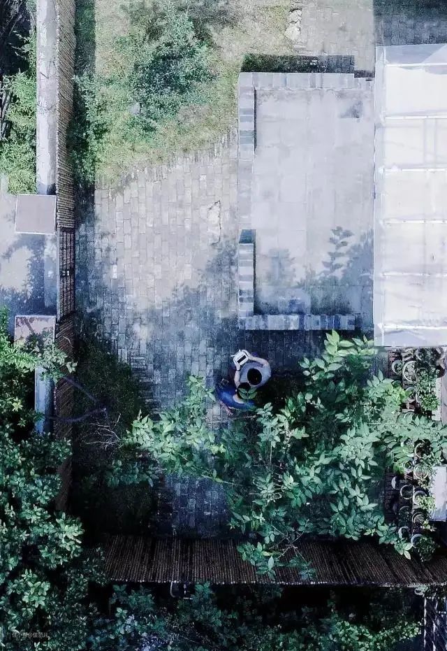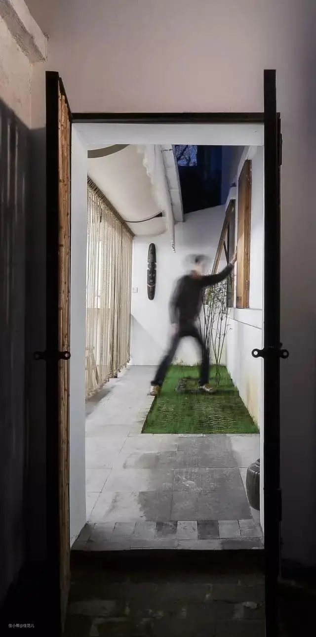 设计师绑了一圈竹子作了2m高的竹墙,折叠门前砌了个青砖台,高度刚好适合一家人围坐在这里聊天。