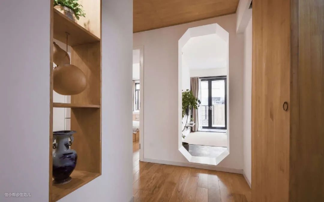 从次卧开门,就可看到八角门框出的客厅和院落小景 。