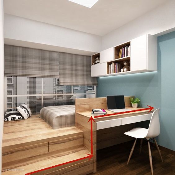 但是今天看完她们几位的卧室装修,我想通了:事在人为,没有拥挤不堪的卧室,只有不够妙的设计,等我们买下小三室也要这么装,不放床,让师傅打张地台床,和书桌、衣柜连一起,极致利用每一寸空间。