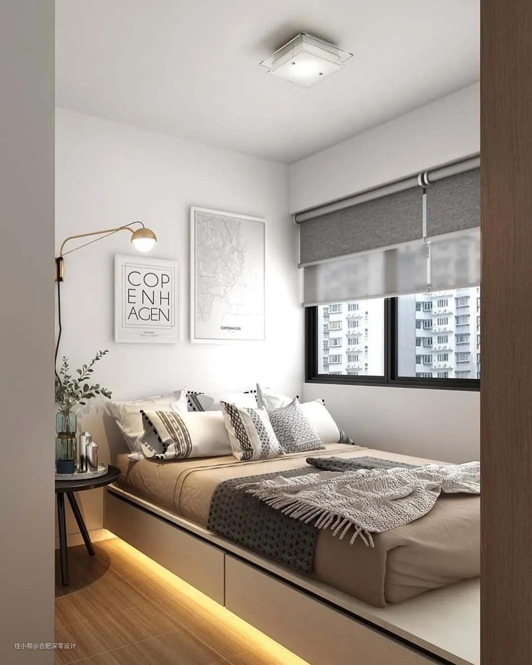 地台床是什么?我就不多解释了,它简直是上天派来拯救小户型的,底部抬高20公分左右,这3㎡的空间,可是能创造出2倍大的储物量,卧室小单独打造一个它,我都觉得实用性已经很强了。