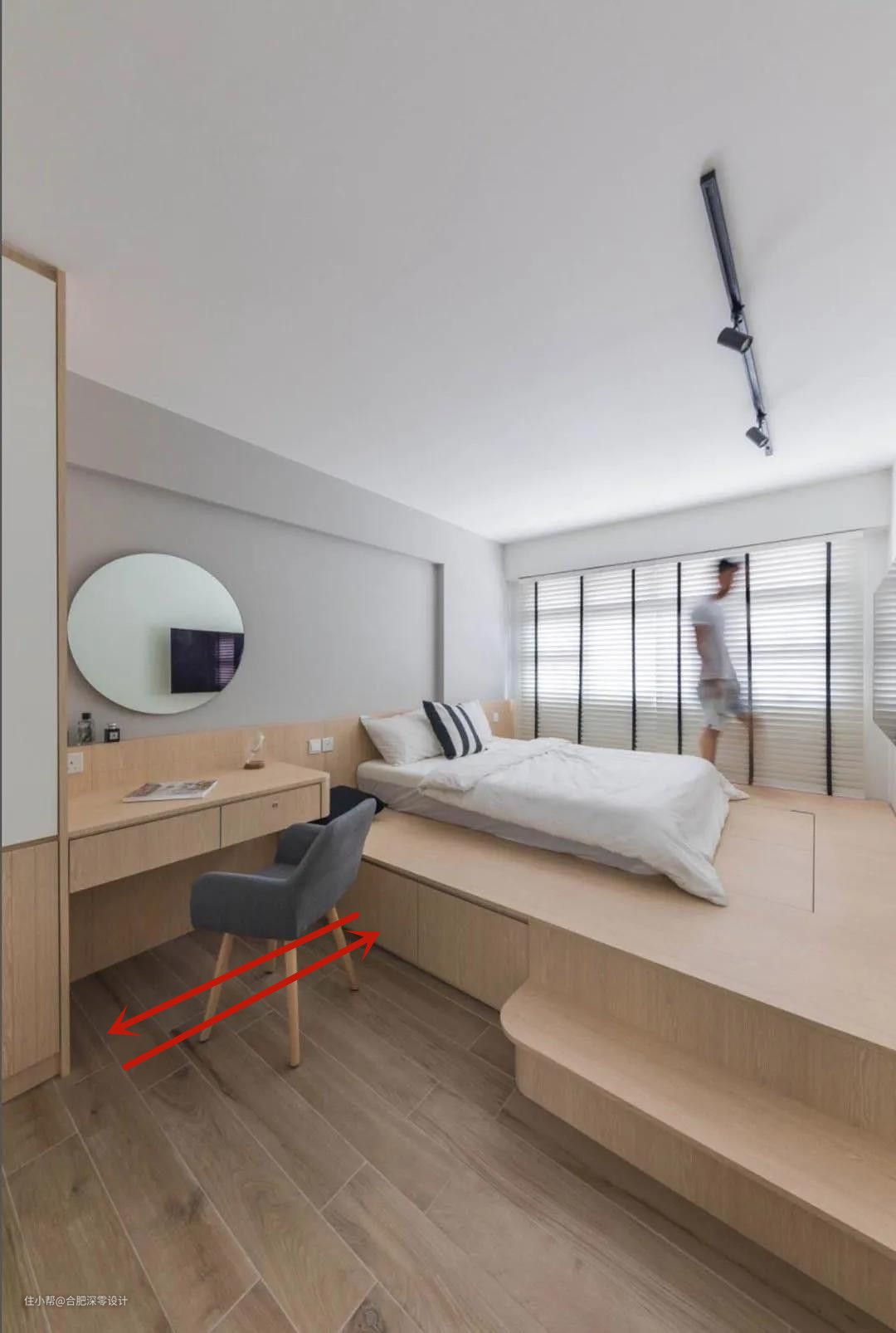 等我买小三房也这么装,卧室不放床,连着书桌打地台,1㎡不放过