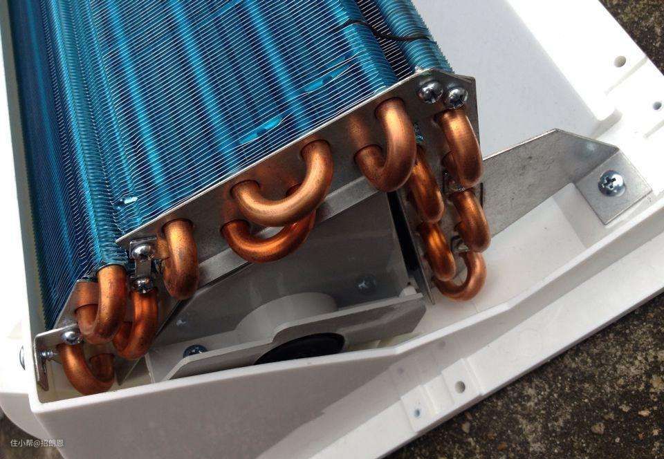 空调用来交换热量的部件就是换热器,内外机各一个,内机是蒸发器,外机是冷凝器,主要由铜管和散热片组成。以室外机为例,冷媒在压缩机和节流装置的带动下,把热量释放到冷凝器上。