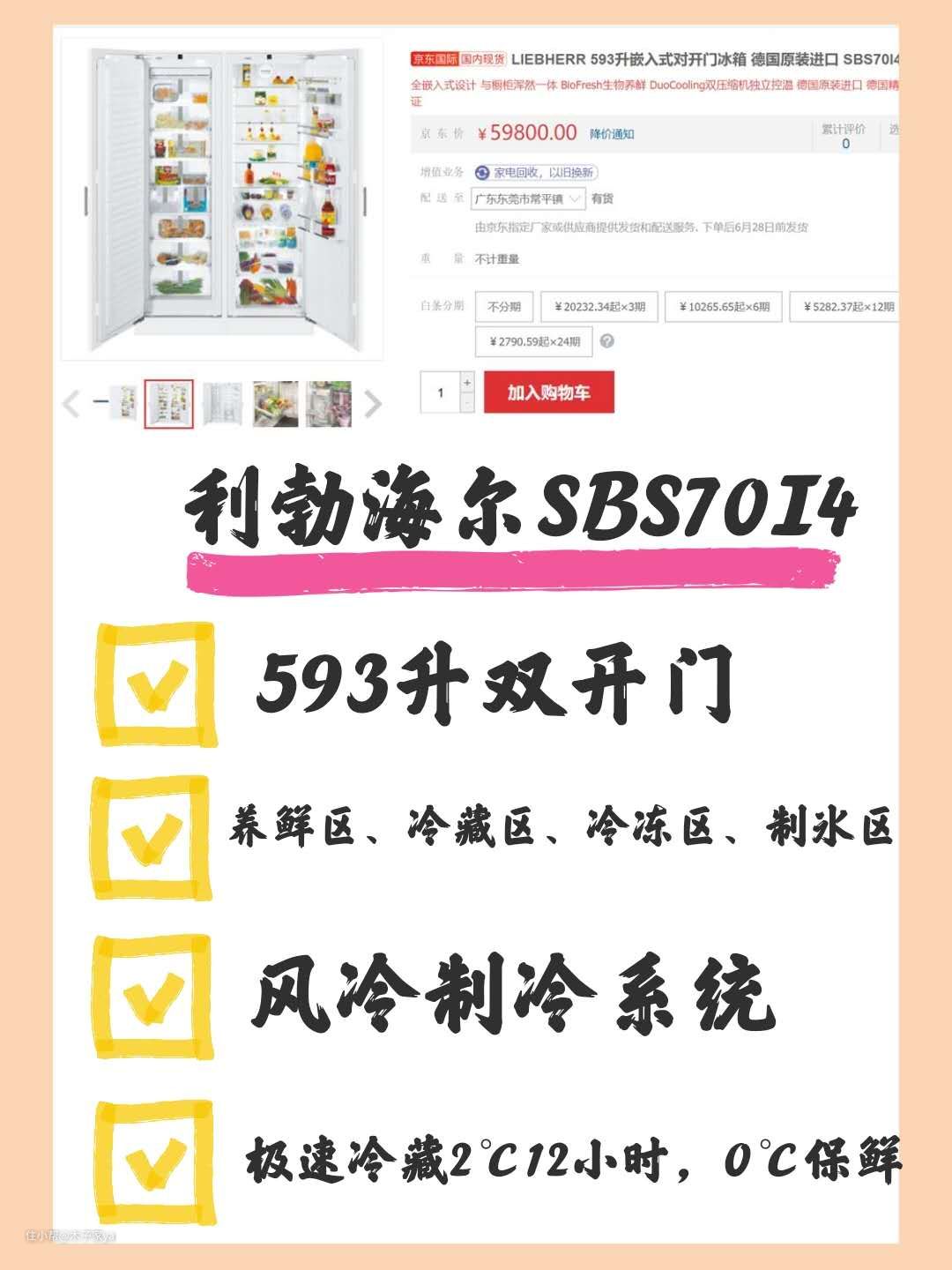 利勃海尔:容量593升,4个分区,生物养鲜区、冷藏区、冷冻区和制冰区。
