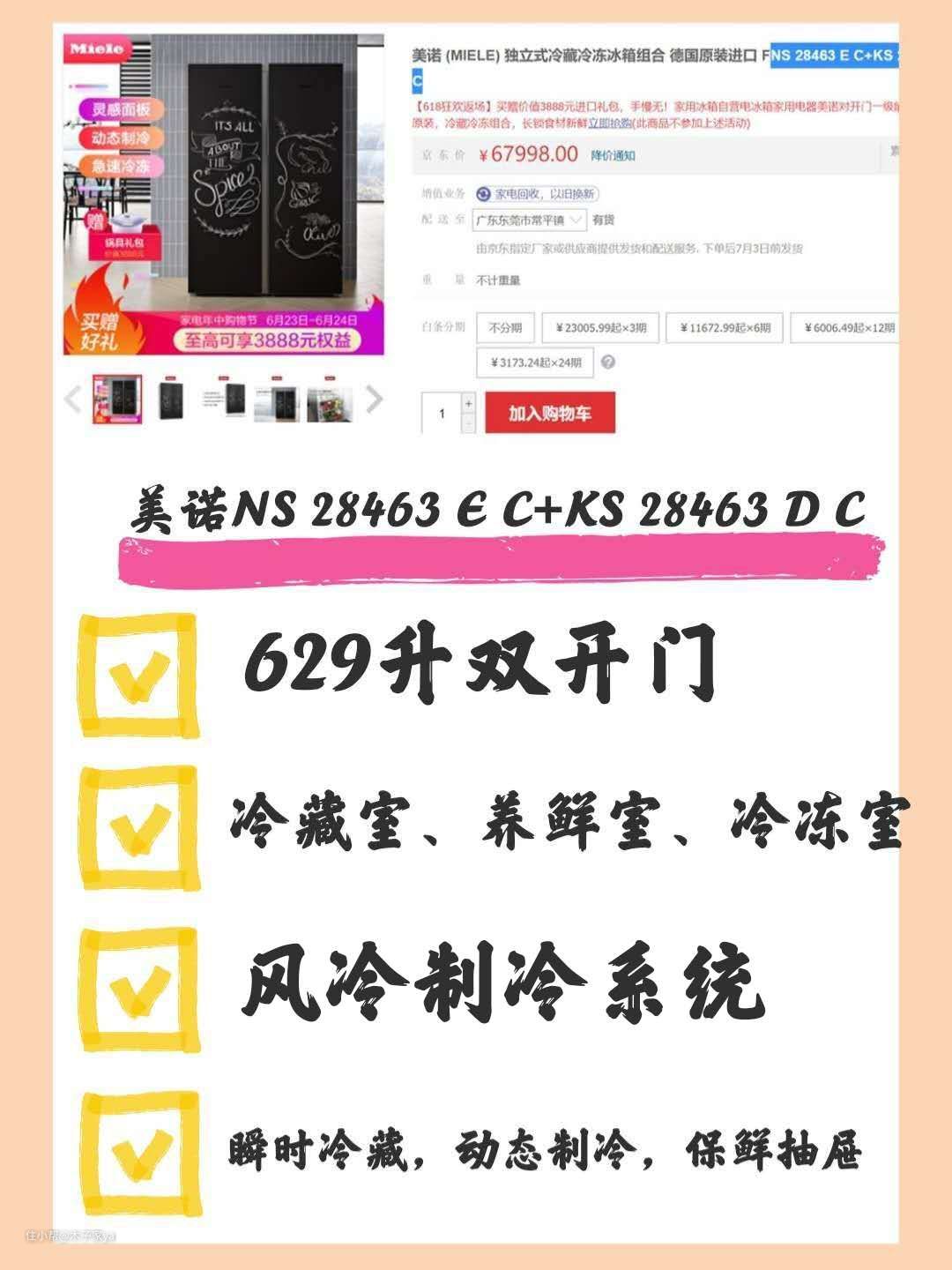 美诺:容量629升,三个分区:冷藏室、生物养鲜室和冷冻室。