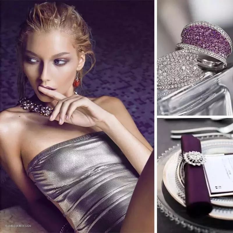 不同亮度的紫色所给人的感受也是不同的,幽暗深邃的紫色显得高贵神秘,明度较高的紫色显得浪漫优雅,因此可以根据所结合的色彩创建不同的情感基调。