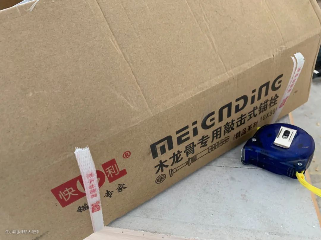 1、我家地面比较松,膨胀螺丝老是打不紧,师傅就建议打发泡胶保证龙骨不至于松动。