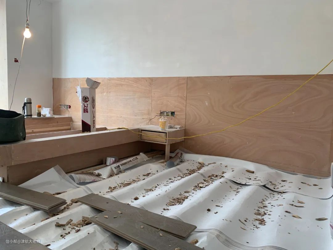 地板在安装过程中,会产生大量废料和木屑。我家地板安装师傅说这个清理工作一般他们是不做的。所以在安装期间,一定要协调好,让项目经理派人做好清灰吸尘工作。不然,后续入住进去,地板下都是木屑,怕是大家都是不能接受的。