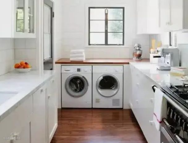 如果家里实在是没有地方放,可以考虑放厨房,这是最后的一个选择。但是厨房不是很建议放洗衣机。厨房油烟大,洗衣机久了容易油腻腻。另外每次洗完澡要从卫生间拿去厨房洗,动线不大合理。