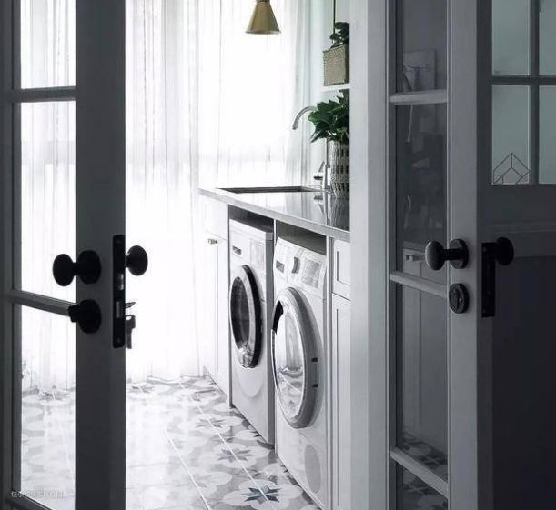 如果家里空间足够,有做专门的洗衣房和家务区,把洗衣机+烘干机放在这里最合适。国外的大house经常这样做。
