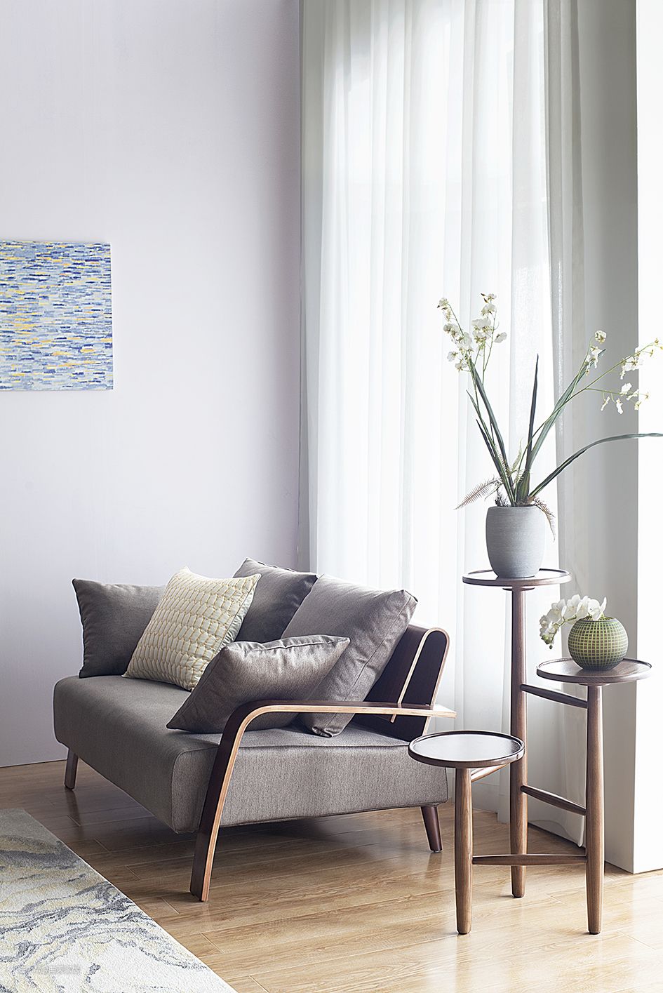 很多人喜欢L型沙发半躺的舒适感,又不想让客厅显得太拥挤,但一般L型沙发贵妃位的长度至少要1.7米以上,对小开间的客厅非常不友好,因此非常不建议选择传统的L型沙发。