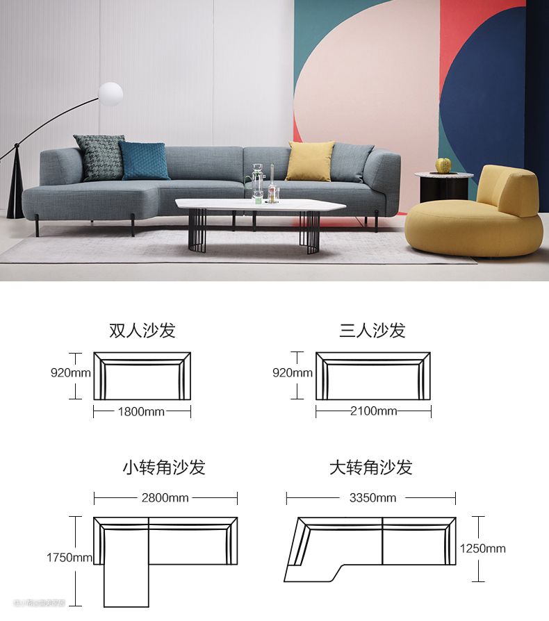 前三款沙发腿都是纤细金属腿,让沙发造型更轻盈,同时让整个客厅空间多了一丝通透感,能让客厅显大。「航行的温暖」座位底部则用了收脚设计,让沙发看上去不会显得厚重,坐的时候小腿也更好放松。