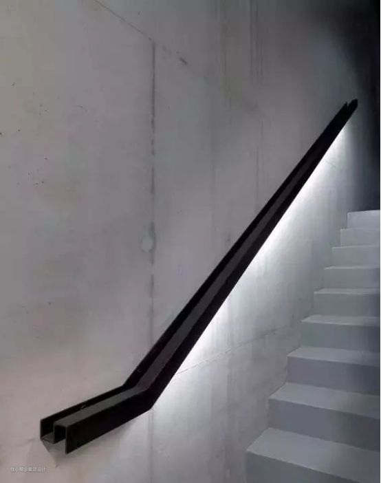 相比于楼梯下安装LED光,给楼梯扶手安装灯带照明,更加省时省力。一般在空间不是很大的楼梯采用这种照明方式,如会所、别墅等。如果是台阶宽度很大的区域,就不太适合这种照明,应要保证照明亮度,提高安全系数。